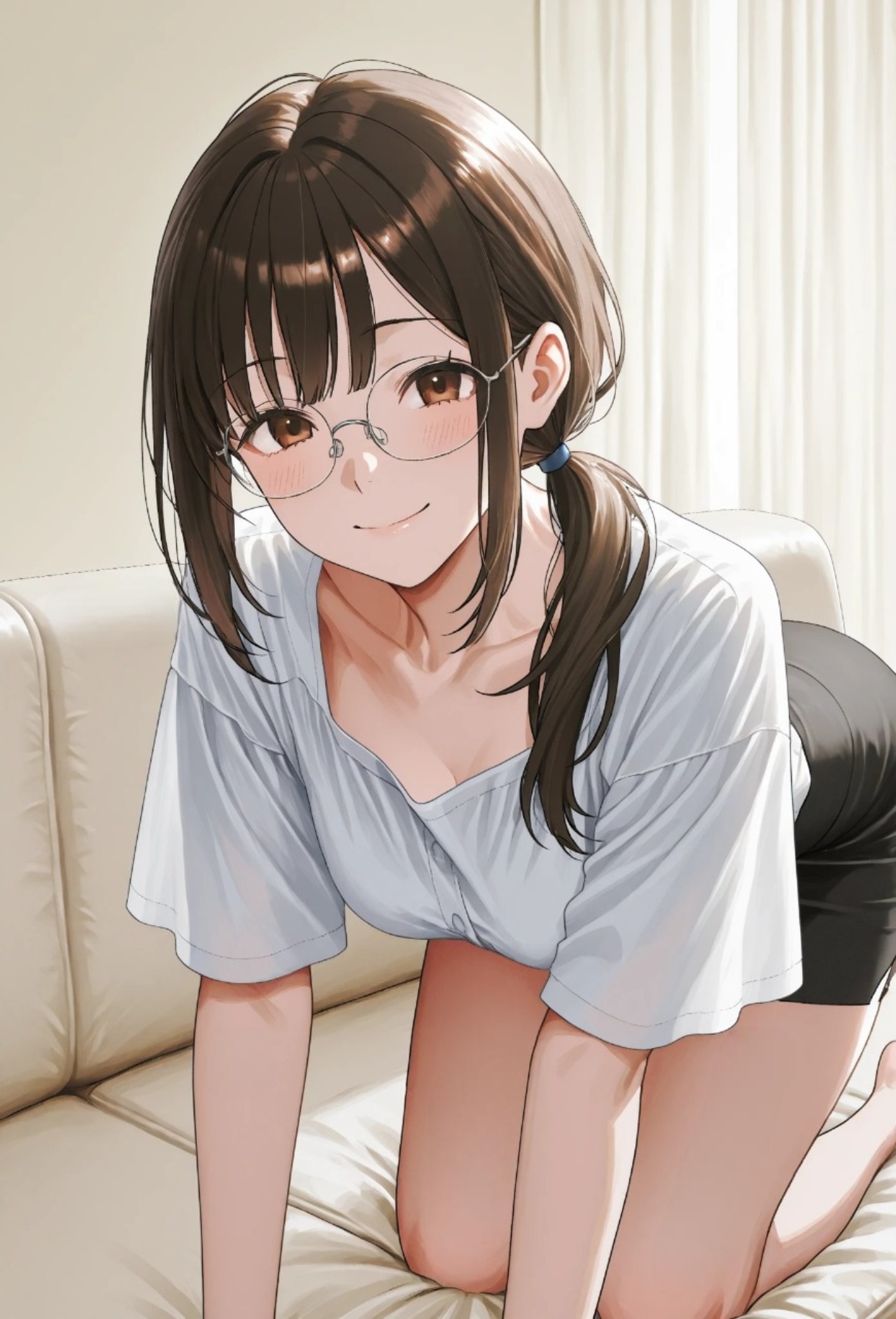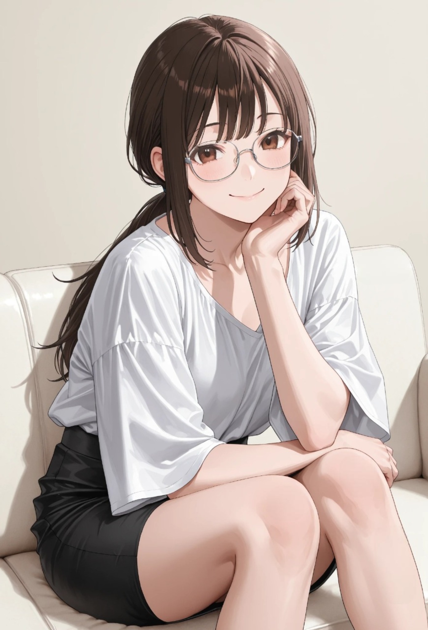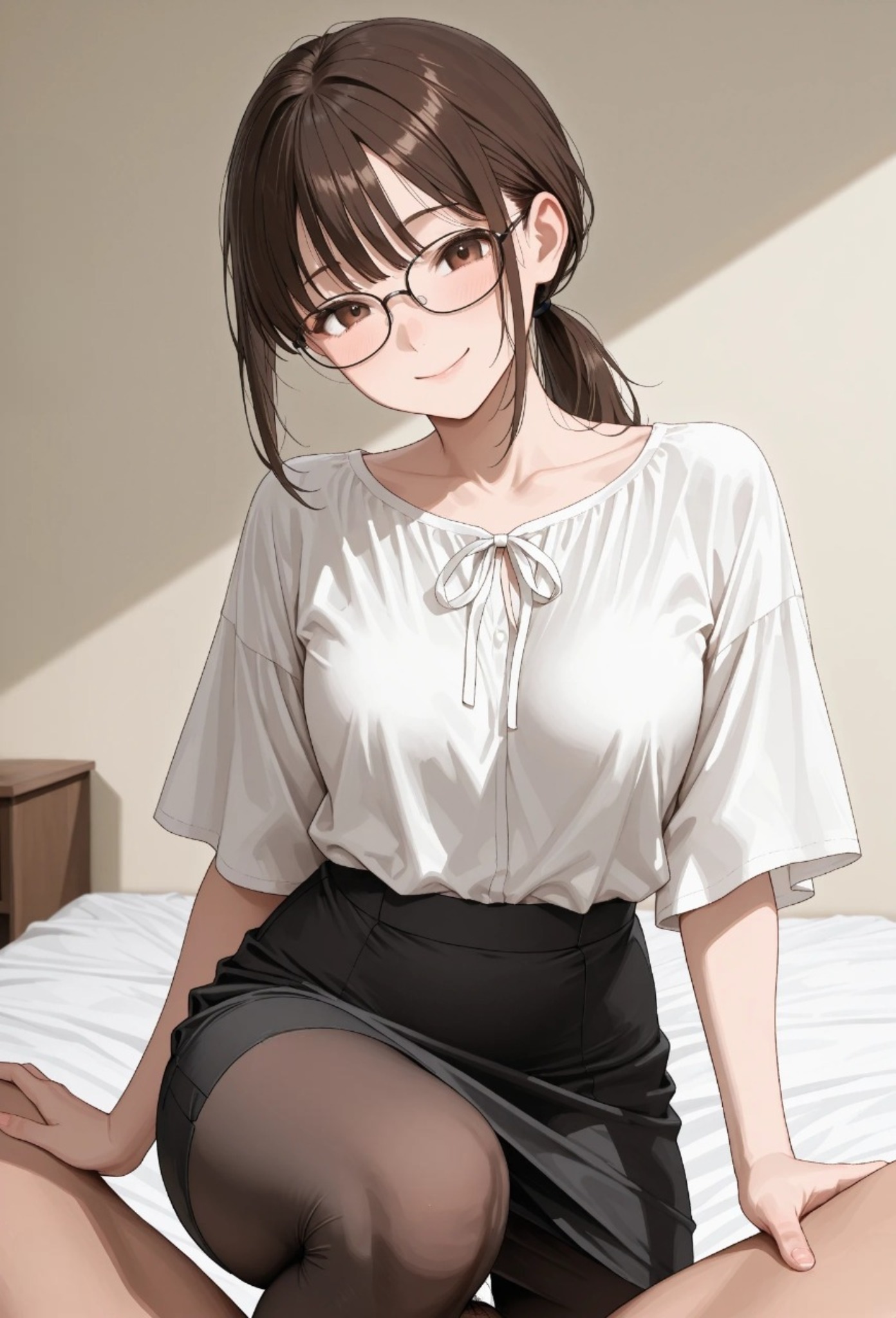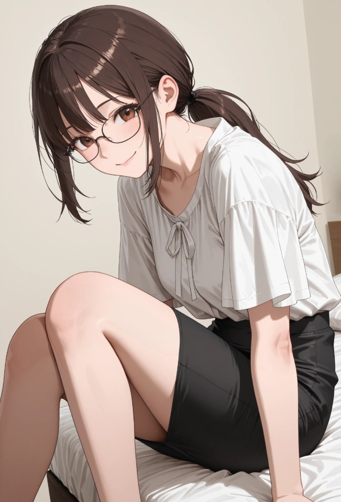 眼鏡の奥で揺れる瞳。彼女が膝を崩すたび、タイトスカートが限界まで引き絞られる。