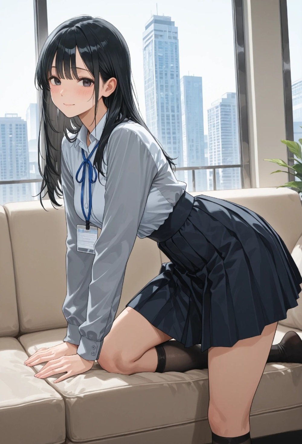 言葉を最後まで紡がせないまま、僕は彼女をソファーへと誘う。黒いタイツに包まれた脚が、抗うふりをして僕の腰に絡みついた。スカートが捲れ上がり、露わになった柔らかな曲線。