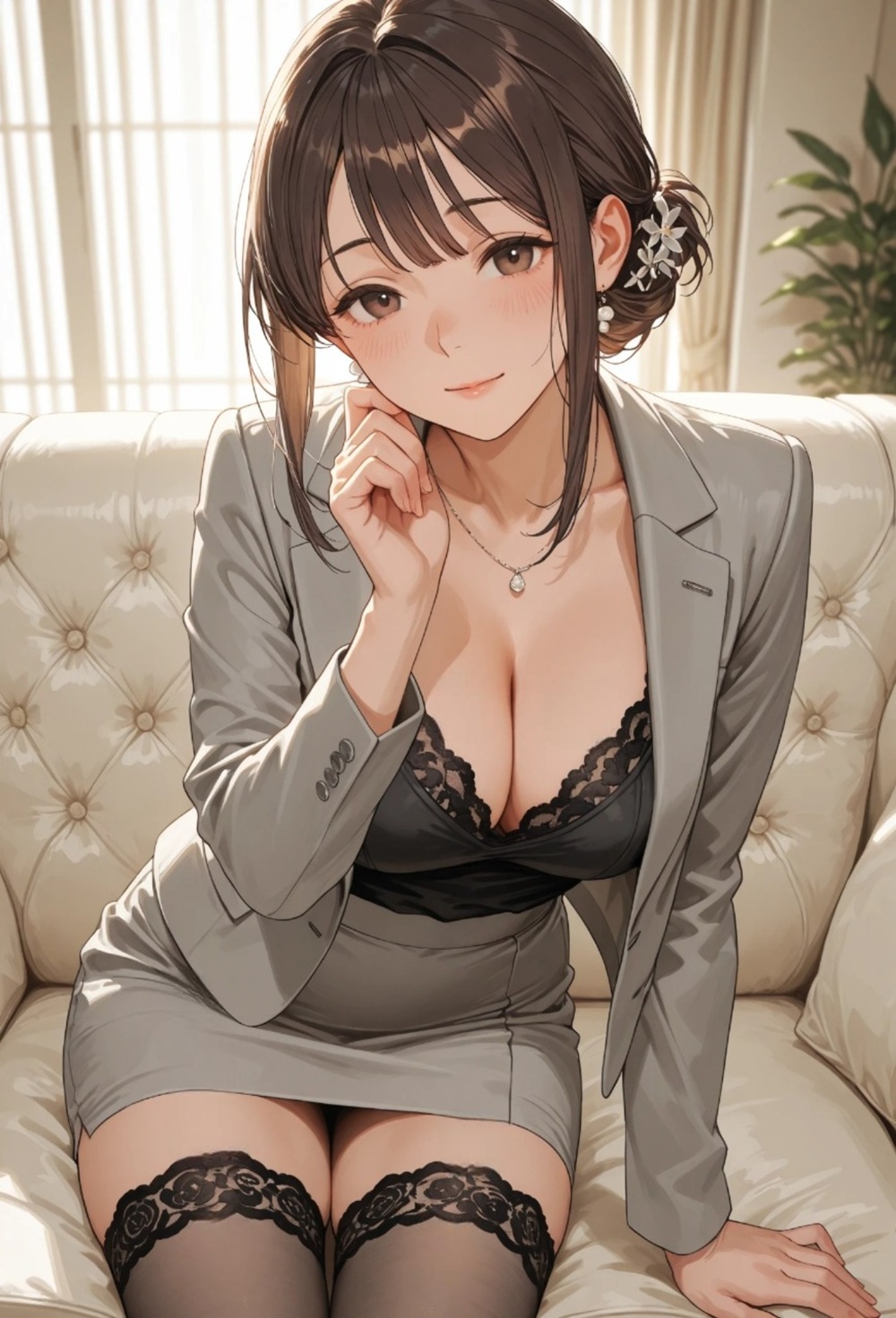 断る間もなく、彼女はブラウスのボタンを解き、グレーのジャケットから豊かな白の肌を溢れ出させた。熱を帯びた吐息が耳元を掠め、巧みな指先と柔らかな唇が僕の理性を瞬時に焼き切っていく。
