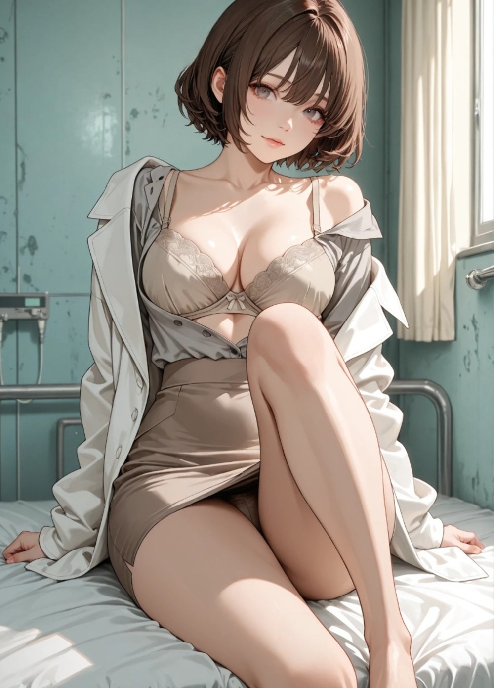 Beneath the cold professionalism of her white coat lies a feverish desire waiting to be diagnosed.