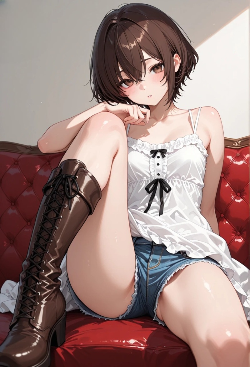 かおりはデニムのショートパンツにロングブーツ、白のキャミソール、そしてショートボブの髪が僕の心をざわつかせる。