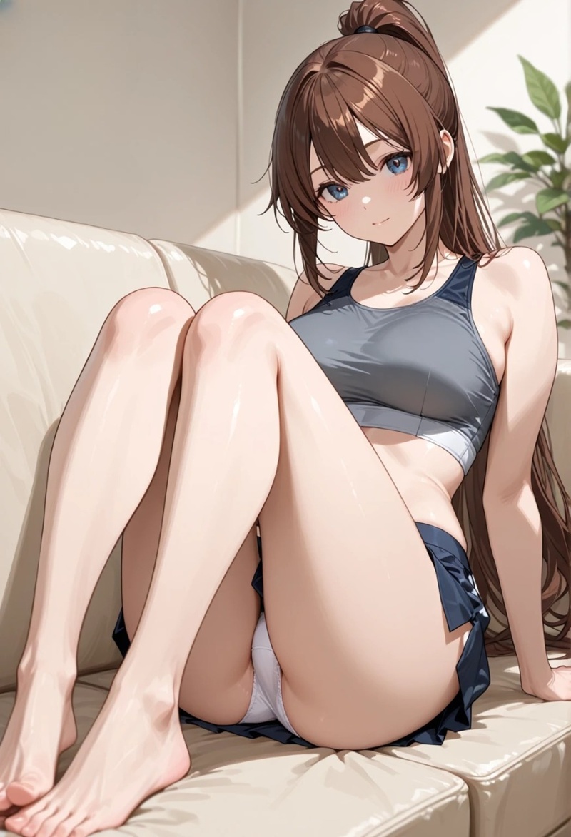 軽やかにソファへ腰かけ、すこしヨガのポーズを教えてくれる彼女の姿…スカートの奥へと目が釘付けになる。