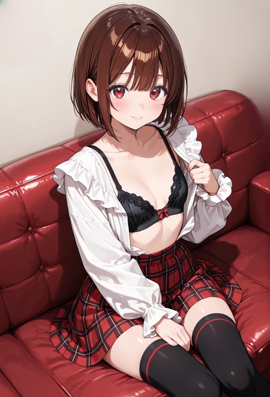 少し動いた拍子に、スカートの隙間から黒ランジェリーがちらり。