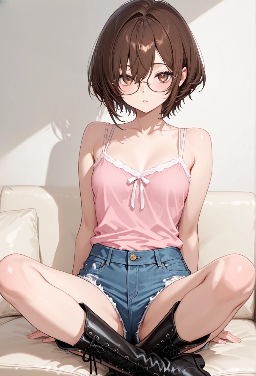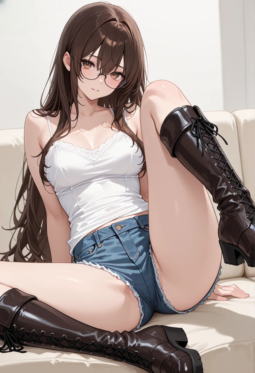 すらりと伸びた脚を包むロングブーツ、その上には小さなショートパンツ。