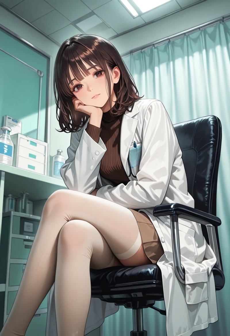 診察室に現れた女医さんは、整った顔立ちで淡々と問診を進める。白衣の袖口、椅子を引く所作、近い距離でも崩れない姿勢。こちらの視線に気づいていないはずがないのに、表情は終始落ち着いたままだ。
